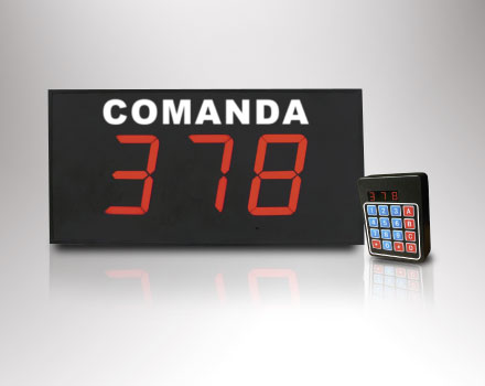 Indicador electrónico de turno para comandas indica a los clientes el número de comanda que está lista para entregarse. Ideal para restaurantes de comida rápida para que los clientes pasen a sentarse mientras esperan su pedido, cuando está listo el número de orden aparece en la pantalla y se escucha una señal audible, indicándole al cliente que puede pasar a recoger su comida.