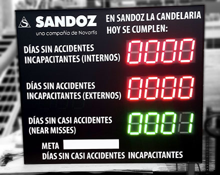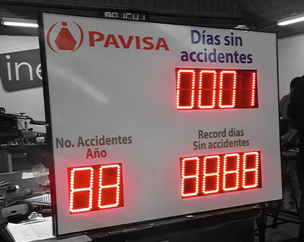 Los Tableros de Seguridad industrial de LEDs y Conteo de días sin accidentes se fabrican con base en la necesidad concreta de nuestros clientes, ningún tablero es igual a otro, cada diseño es resultado del diagnóstico de la necesidad del cliente. Podemos fabricar los Tableros de Seguridad industrial a su necesidad variando color de LEDs, tamaño de gabinete, leyenda, etc.